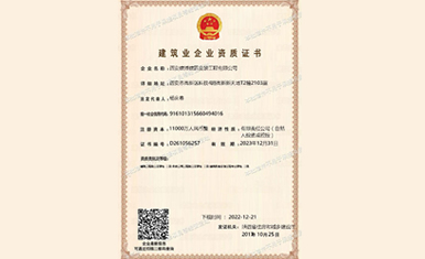 建筑幕墙工程专业承包二级;电力工程施工总承包二级;机电工程施工总承包二级;消防设施工程专业承包二级;防水防腐保温工程专业承包二级;钢结构工程专业承包三级