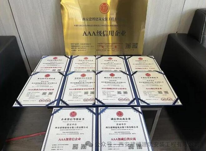 西安建博建筑安装工程有限公司荣获“10证书 +1信用报告 +1牌匾”证书