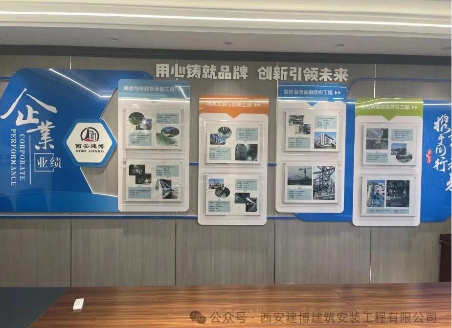 为更好地提升公司形象、塑造企业文化,西安建博建筑安装工程有限公司企业文化墙大升级,办公室环境焕然一新。